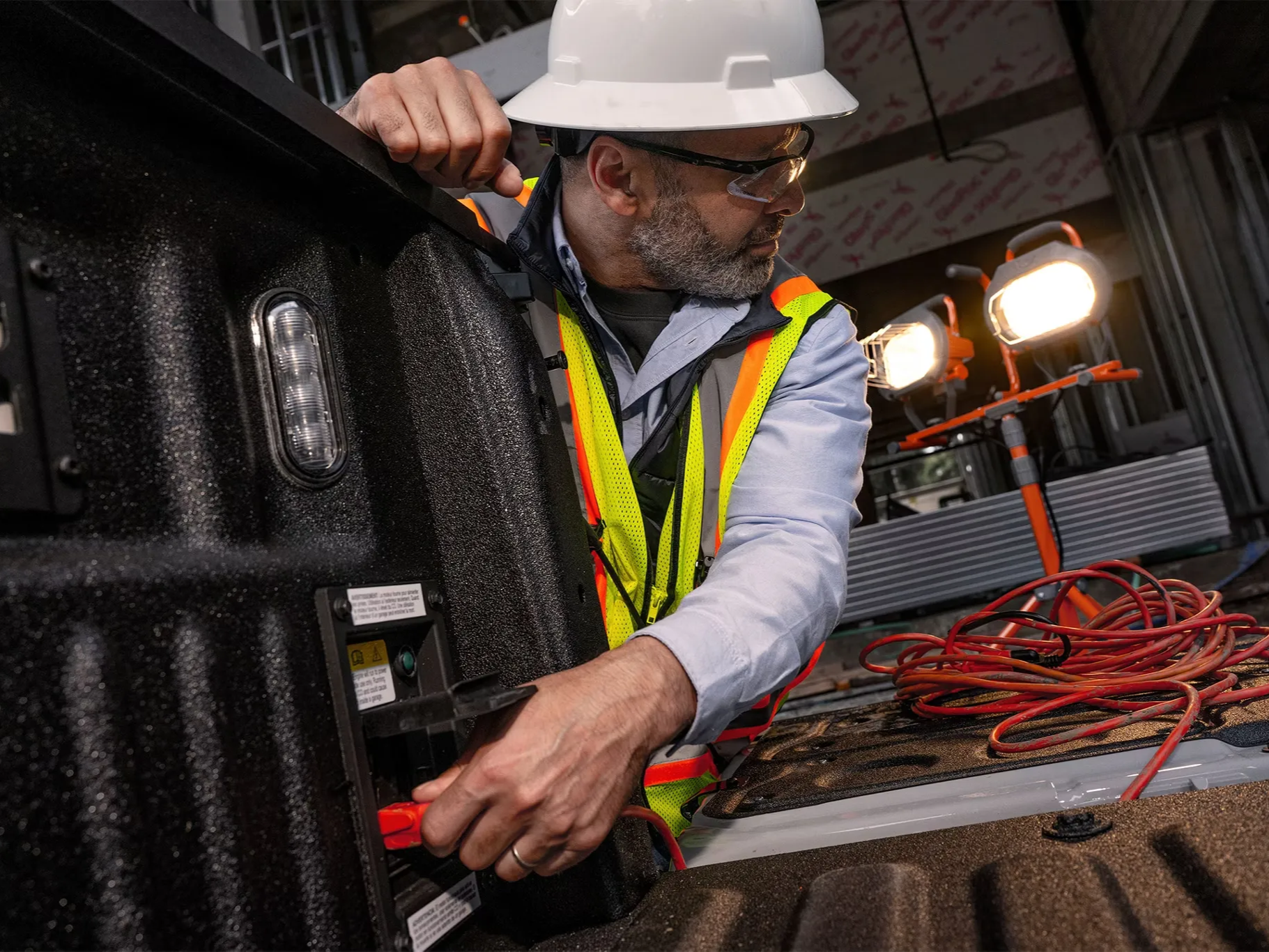 Power up wherever you need with up to 2 kW of power right at your fingertips. With this feature, take your work off-site, host a football tailgate, light up your campsite, or more by plugging your equipment into your truck's in-bed outlets.